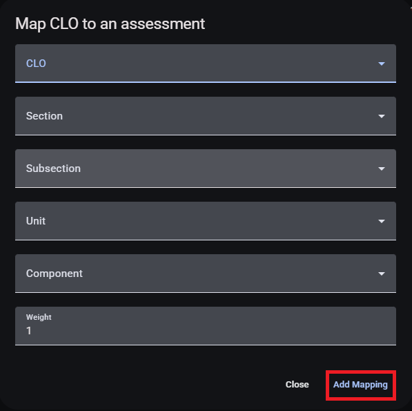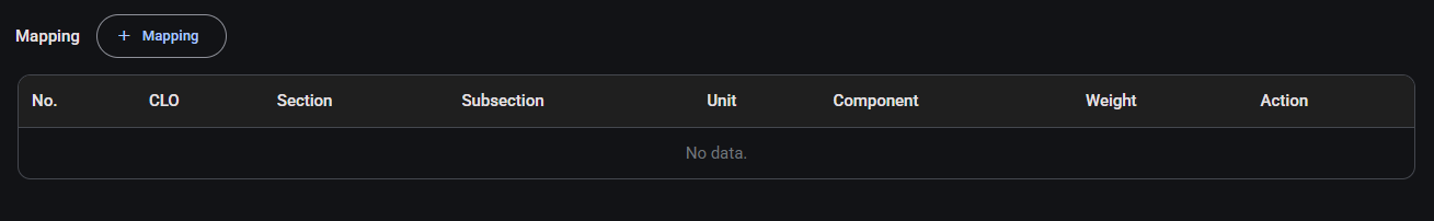 Nhấp nút + MAPPING để gán một CLO với một bài kiểm tra.