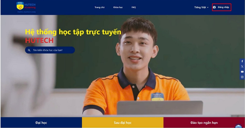 Lưu ý: Quy trình đăng nhập hệ thống Hutech eLearning trên ứng dụng (app) là tương tự như trên website.