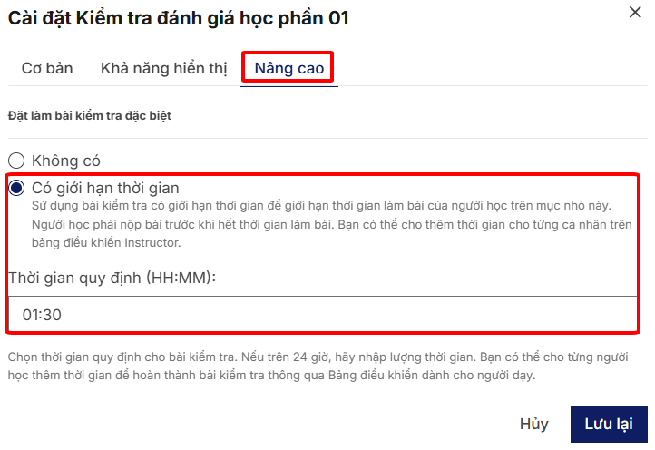 Cài đặt thời gian nộp bài (Tự luận – Trắc nghiệm)