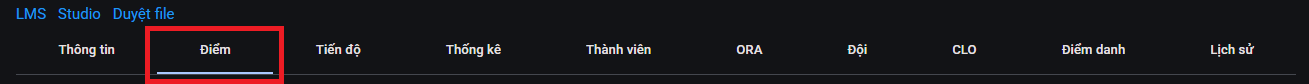 Truy cập vào trang lms.hutech.edu.vn → chọn khóa học, mở chế độ Insights và nhấp chọn "Điểm".