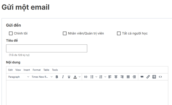 Mục đích: Gửi mail cho người học trong khóa học mà giảng viên đang vận hành.