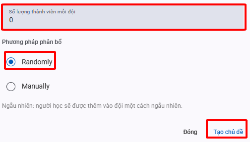 - Cách 1: Tạo nhóm và phân bổ người học ngẫu nhiên