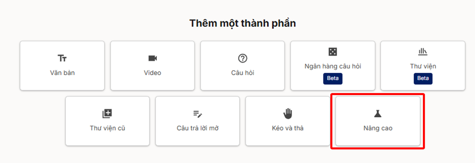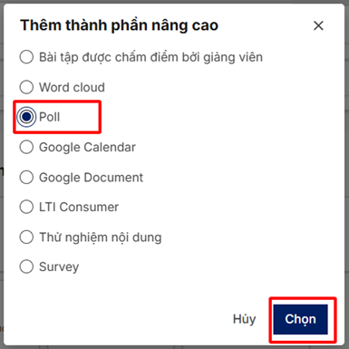 Chọn vào thành phần Nâng cao -> Poll
