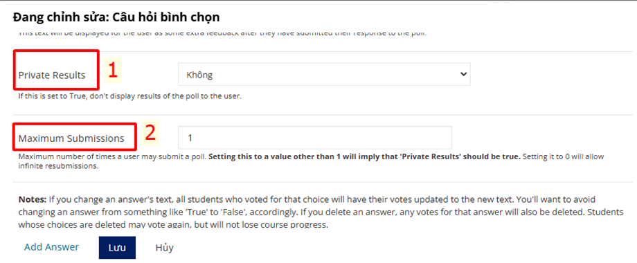 - Maximum Submissions: Số lần cho phép người học bình chọn